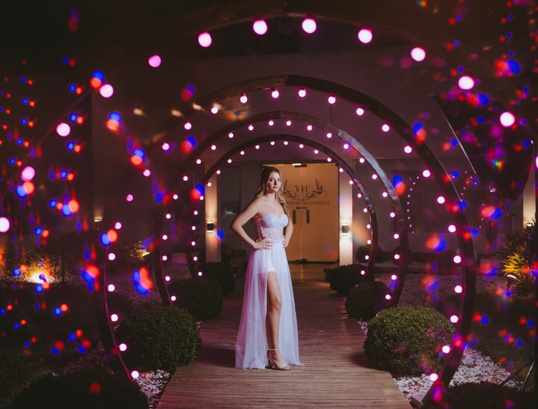 Diseñamos fiestas encantadoras que capturan elegancia y la magia de tus 15 años.
